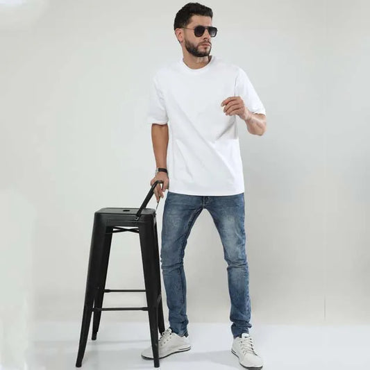 Unisex Oversized Classic T-Shirt, S-XXL, Black, White, Navy Blue, Royal Blue, Maroon, Baby Blue, Grey Melange, 240 GSM, 100% Cotton, Lycra Ribbed Neck